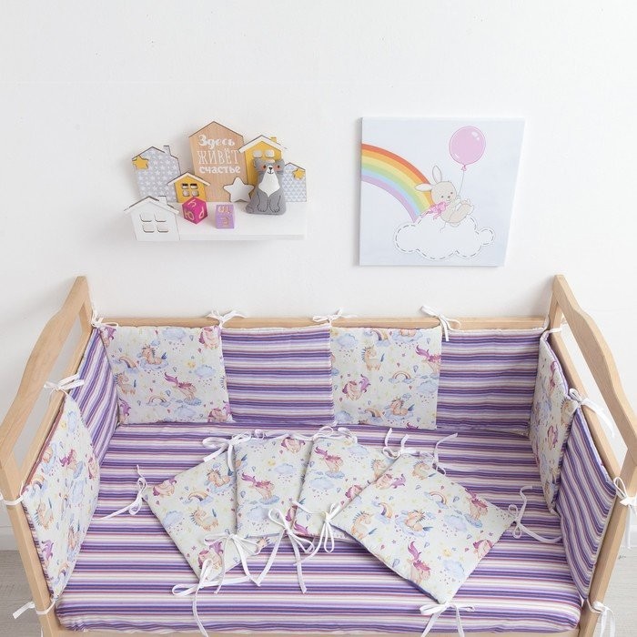 Бортики в кроватку Крошка Я «Единороги» (32×32 см — 12 шт.), бязь/синтепон
