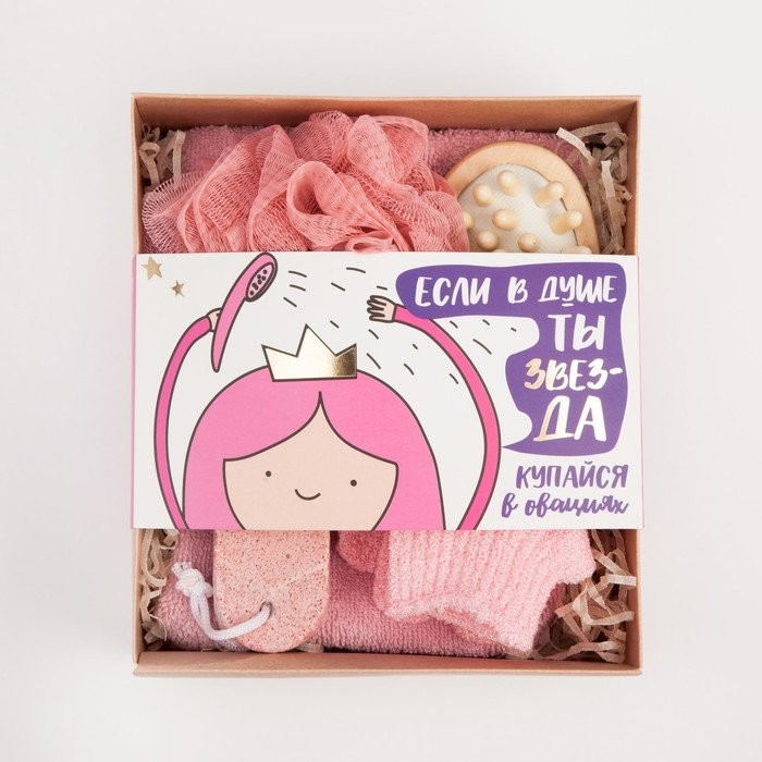 Подарочный набор «Звезда в душе» полотенце 30×60 см и банные аксессуары