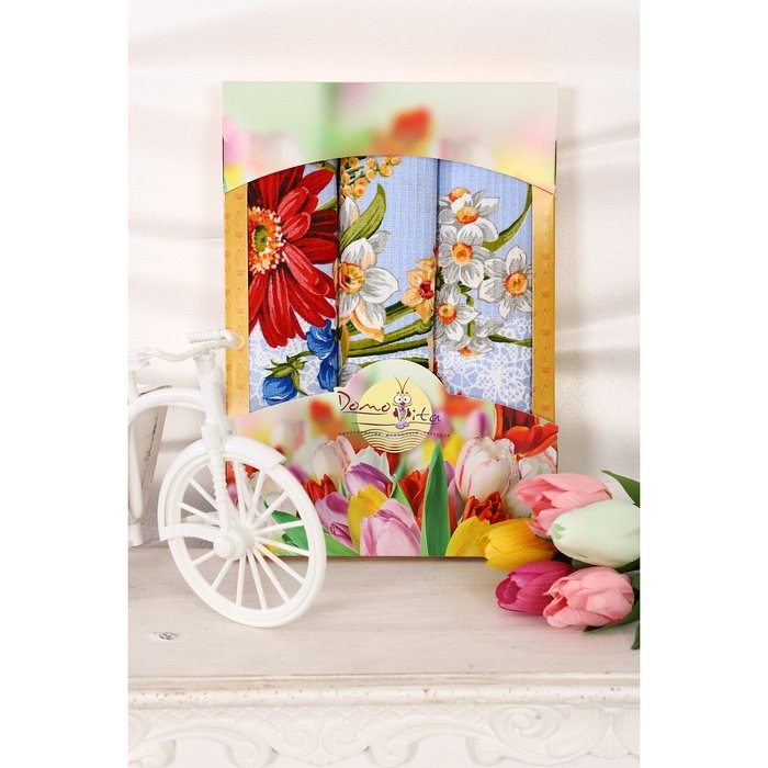 Набор полотенец в коробке Цветы для любимых 45×60 см, 3 шт, голубой, вафля, 170 гр/м2, хлопок 100%