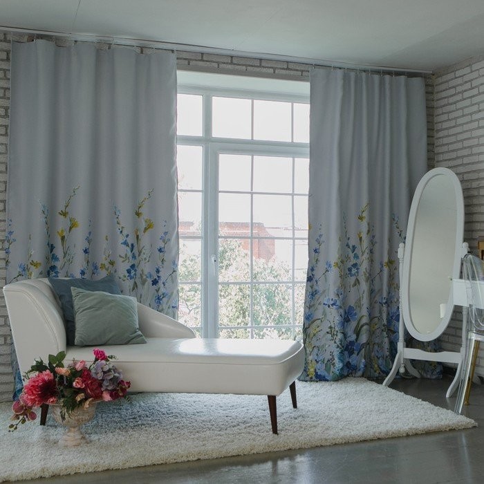 Штора портьерная Этель «Акварель» цв.синий, 250*265 см, пл. 210 г/м2, 100 п/э