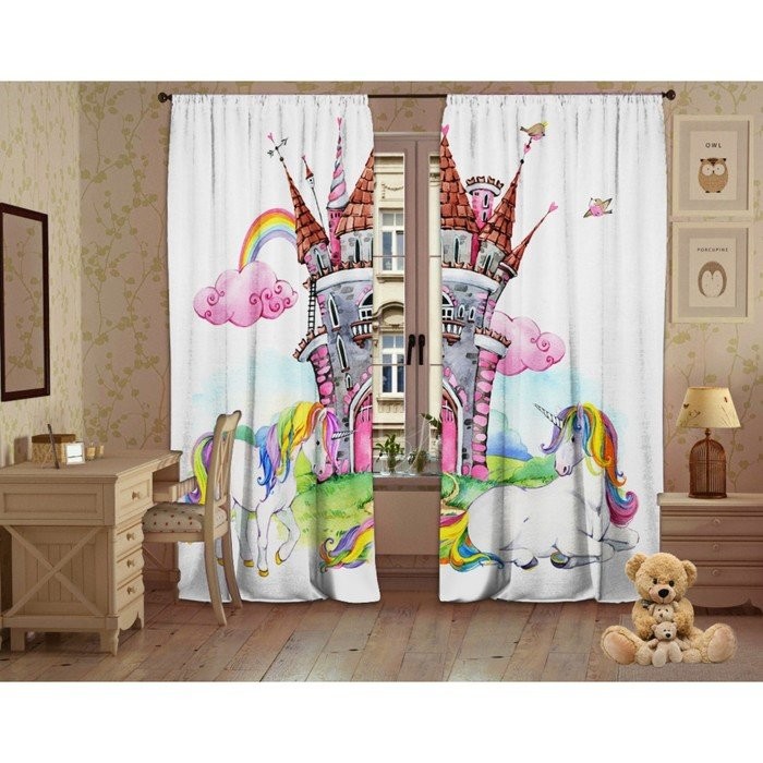 Комплект штор Дружба единорогов 147×267 +/-3см 2 шт, габардин, п/э