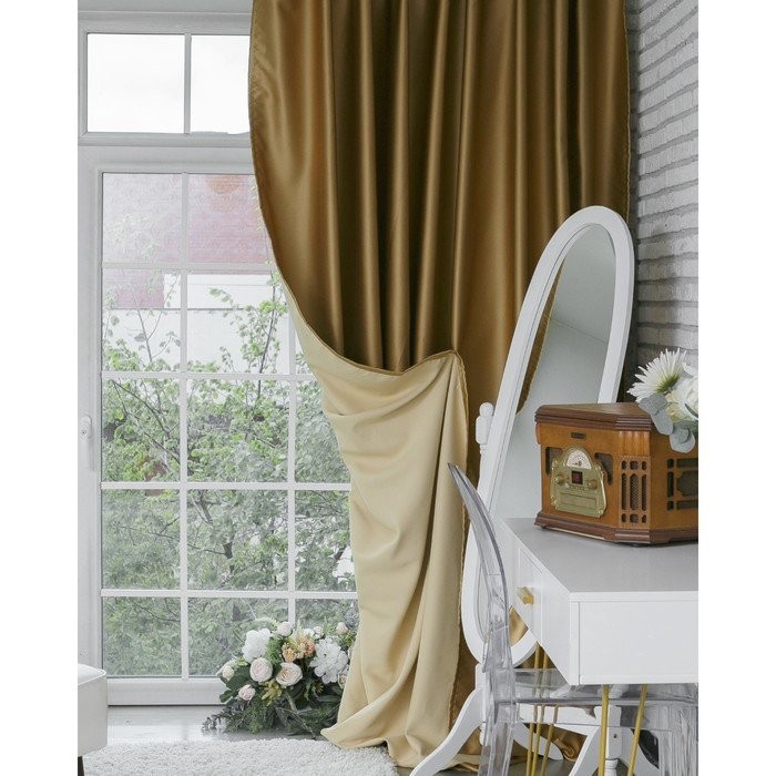 Штора портьерная «Этель» 145×265 см, двусторонний блэкаут, цвет Золотой, пл. 240 г/м², 100% п/э