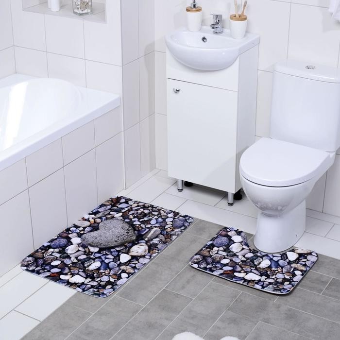 Набор ковриков для ванны и туалета Доляна «Галька», 2 шт: 40×50, 50×80 см