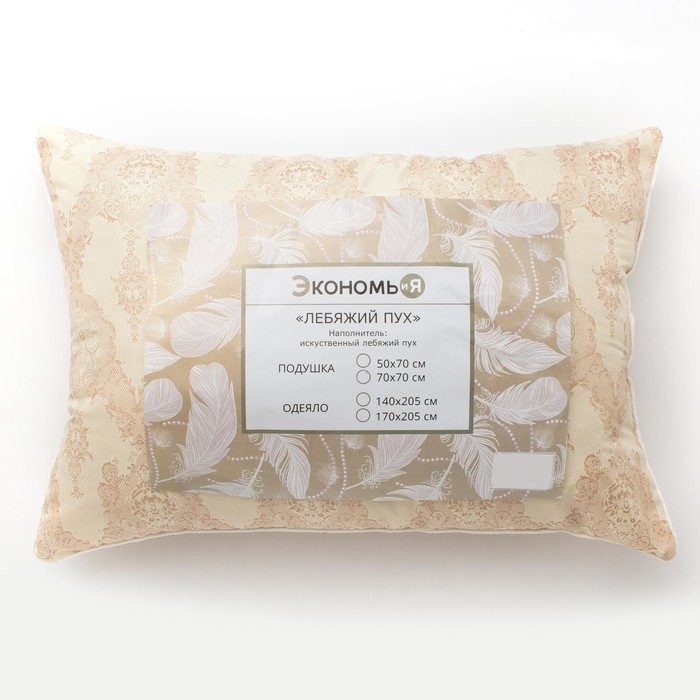 Подушка Экономь и Я 50*70 Лебяжий пух, чехол тик, цв. МИКС, п/э