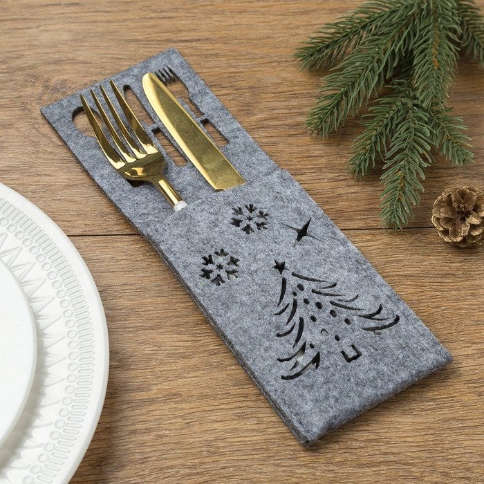 Конверт для столовых приборов Доляна «Новый год», цвет серый, 25×8, 5 см