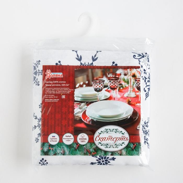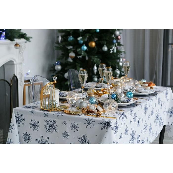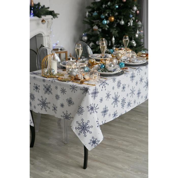 Скатерть Доляна «Новый год: Синие снежинки» 110×149 см, 100% хлопок, 164 г/м2