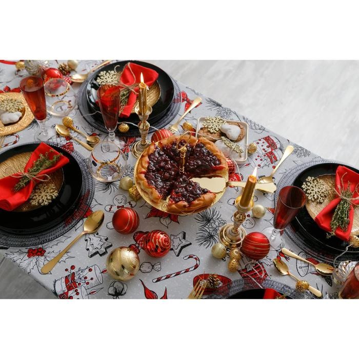 Скатерть Доляна «Новый год: Новогоднее настроение» 220×149 см, 100% хлопок, 164 г/м2