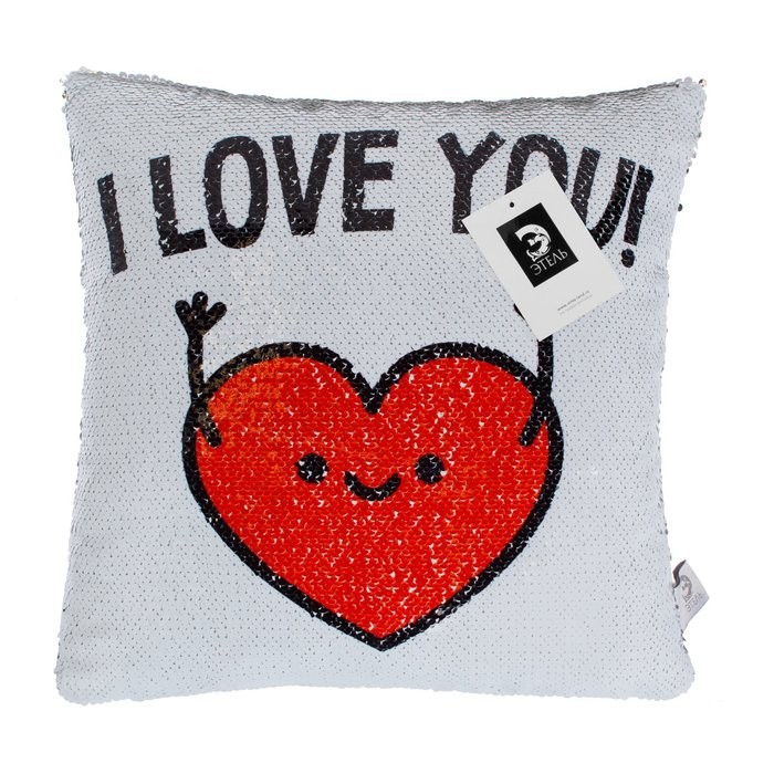 Наволочка с пайетками «Этель» I love you, 40×40 см, велюр, 100% п/э
