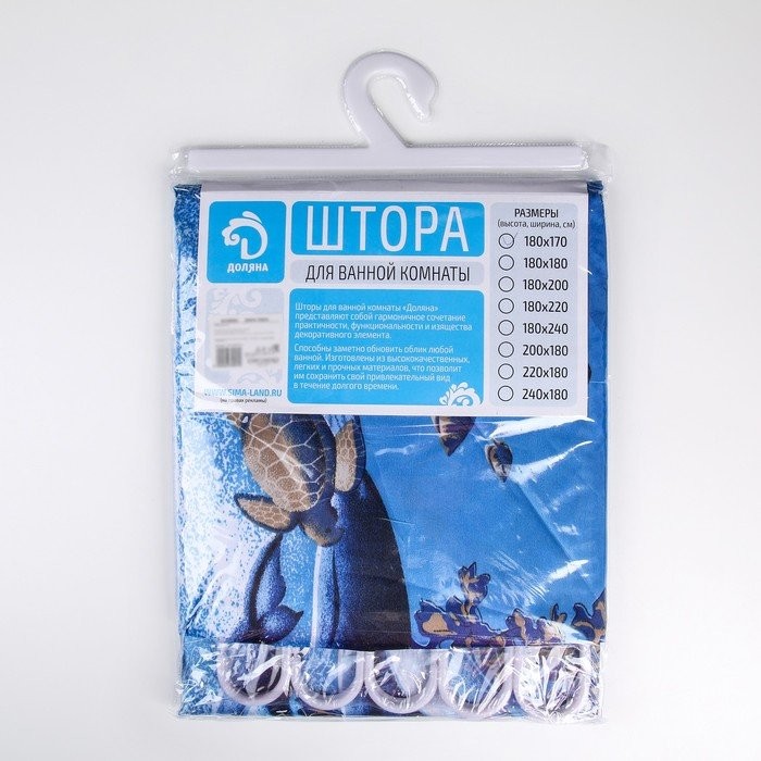 Штора для ванной комнаты Доляна «Киты и черепахи», 180×160 см, полиэстер