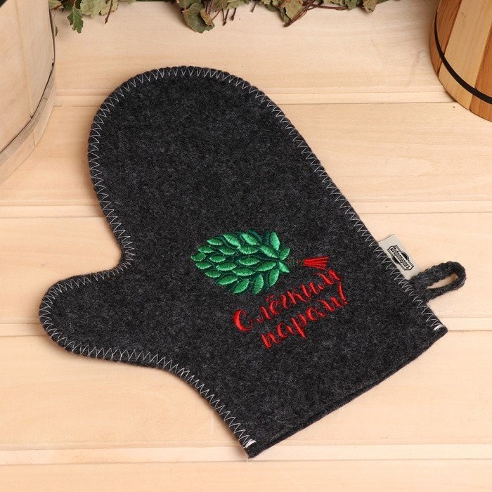 Рукавица для бани с вышивкой «С лёгким паром» серая