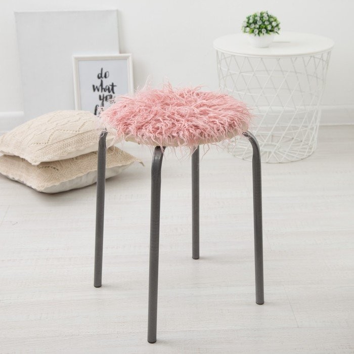 Сидушка на стул меховая Доляна «Уют» цв.розовый d 30 cm,100% п/э