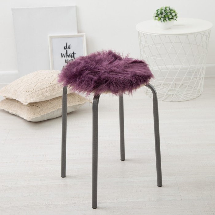 Сидушка на стул меховая Доляна «Пушинка» цв.фиолетовый d 30 cm,100% п/э
