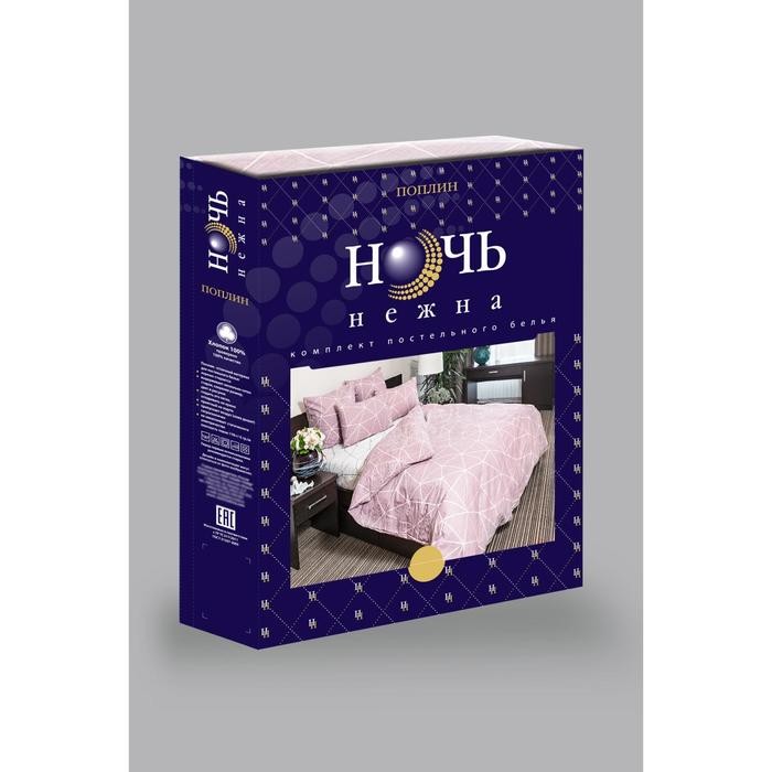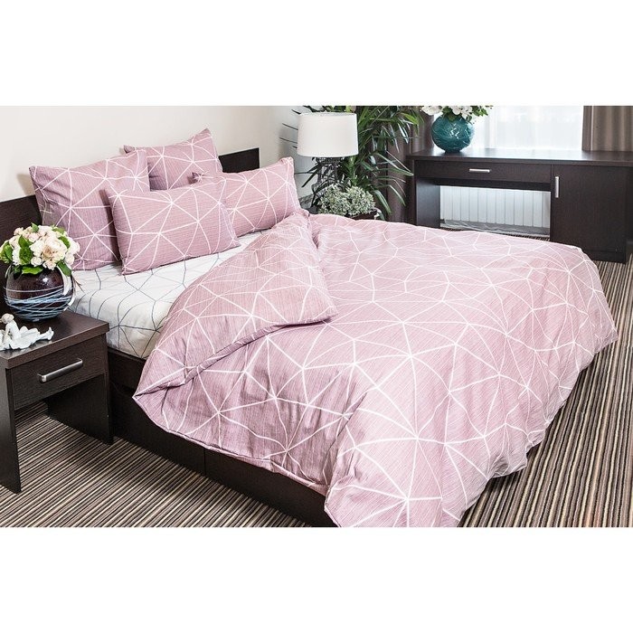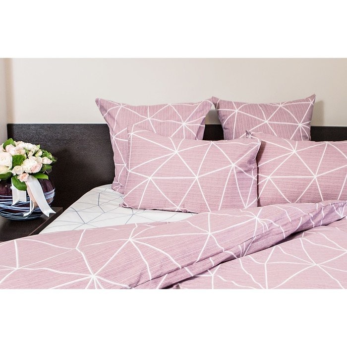 Постельное бельё Ночь Нежна евро «Грань», брусничный, 200×220, 220×240, 70х70см 2шт, поплин