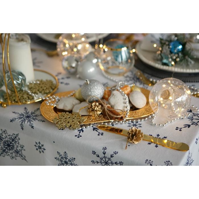 Скатерть Доляна «Новый год: Синие снежинки» 180×149 см, 100% хлопок, 164 г/м2