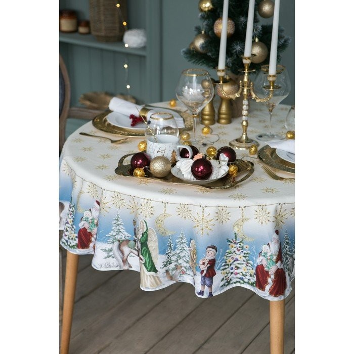 Скатерть «Этель» Christmas time d=150см +/-3см с ГМВО, 100%хл, саржа 190 гр/м2
