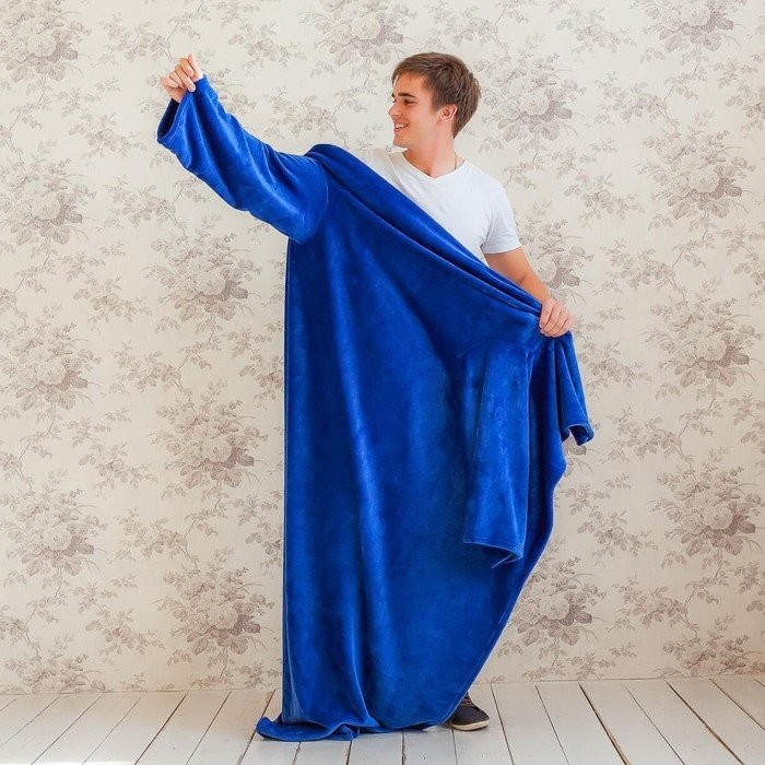 Плед с рукавами, цвет синий, 150×200 см, рукав — 27×52 см, аэрософт