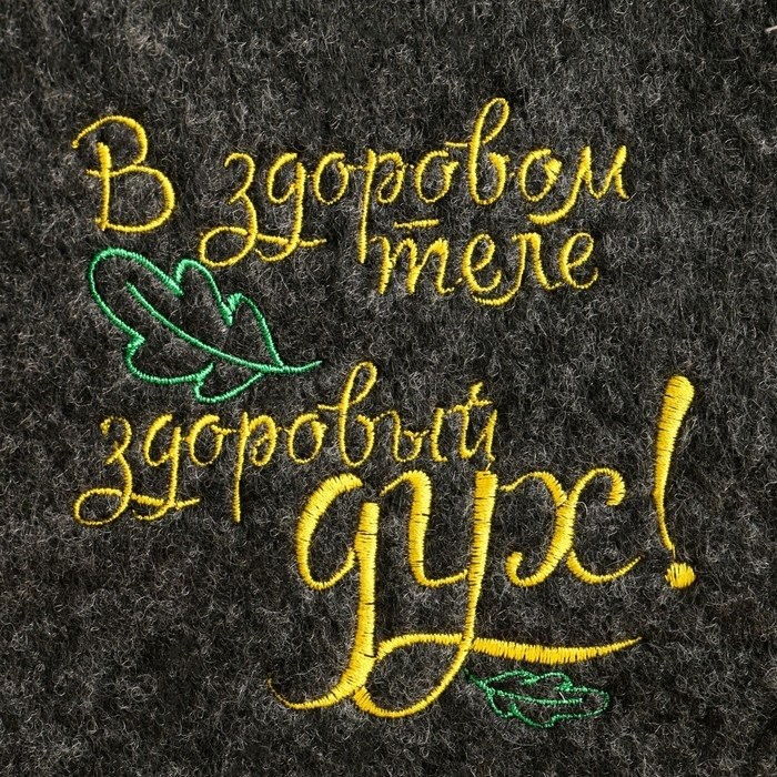 - банная шапка с вышивкой «В здоровом теле здоровый дух»;