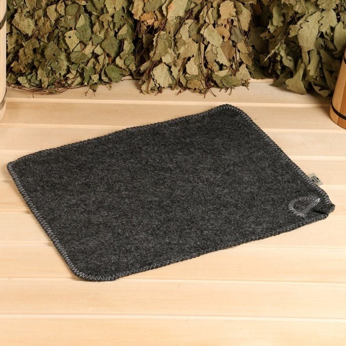 Тапочки из войлока и коврик впитывают влагу и сохраняют сухость, что обеспечивает комфорт во время посещения парной.