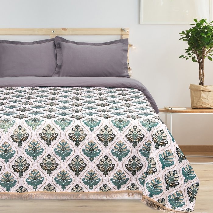 Покрывало гобеленовое Этель «Барокко» с бахромой, бирюзовый, 140х200см, п/э 80%, хл 20% (450 г/м2)