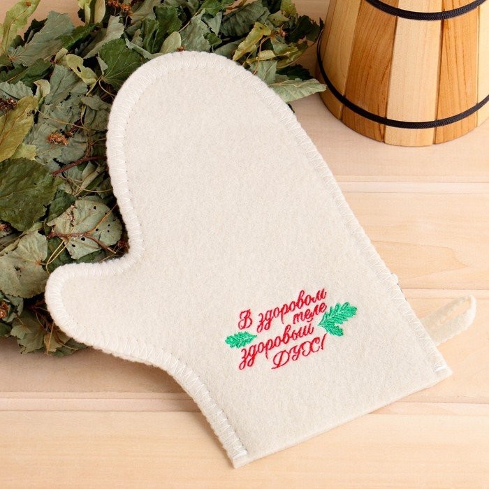 Для комфортного отдыха в парной возьмите с собой набор банных принадлежностей. Предметы из этого комплекта предохраняют тело от перегрева и являются средствами индивидуального пользования. Влажные изделия рекомендуется сушить в расправленном виде на горизонтальной поверхности. Принадлежности из войлока и фетра стирайте вручную при температуре воды 30 °C.