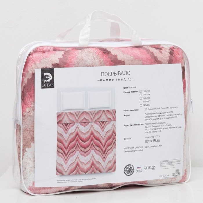 Покрывало Этель «Памир» 2 сп макси 200*230 см, цв. розовый,160 г/м2,100% п/э