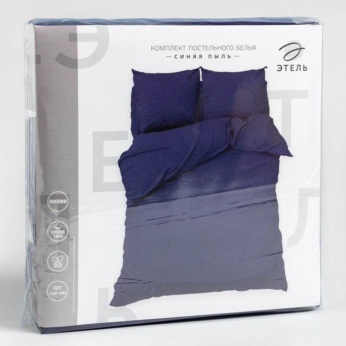 Постельное белье евро «Синяя пыль» 200×217, 240×220, 70×70−2 шт