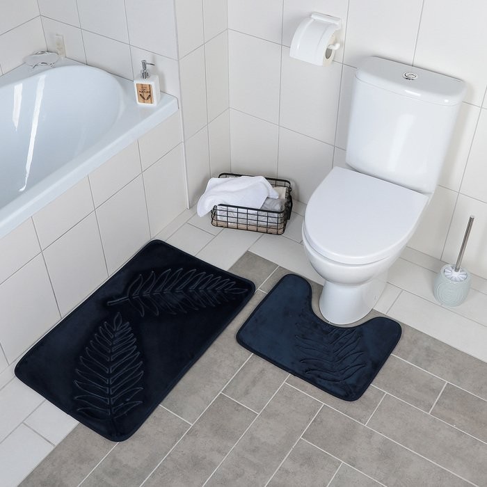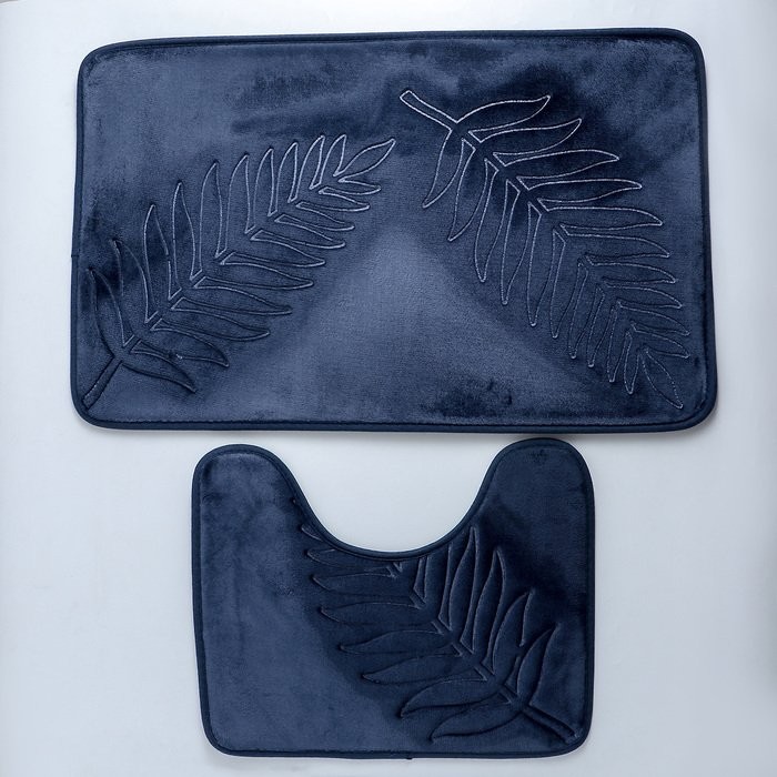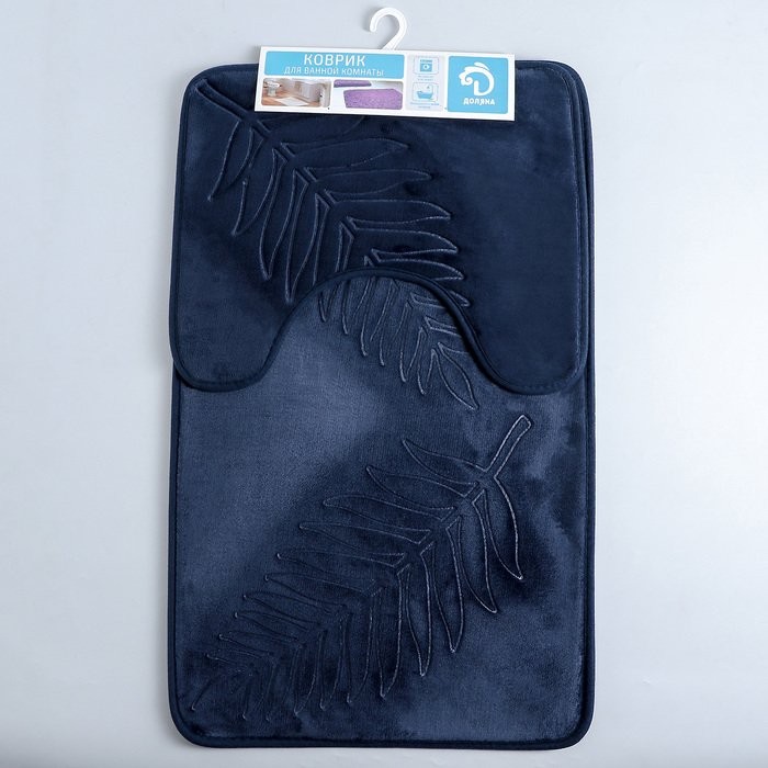 Набор ковриков для ванны и туалета Доляна «Тропики», 2 шт: 40×50, 50×80 см, цвет синий