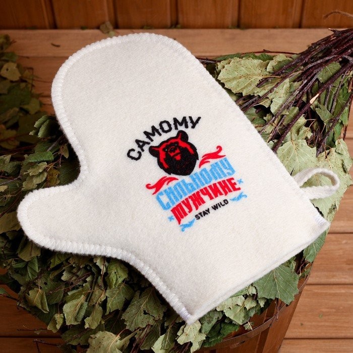 Рукавица позволяет безбоязненно поддать пару и закрыть заслонку печи. В ней вы сможете прикасаться к нагретым металлическим предметам и использовать веник. Изделие защищает от порезов, ожогов и мозолей.