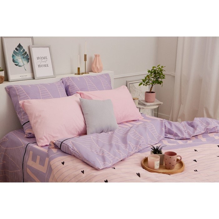 Постельное бельё «Этель» 1.5 сп Violet love 143*215 см, 150*214 см, 70*70 см — 2 шт, бязь 125 г/м2