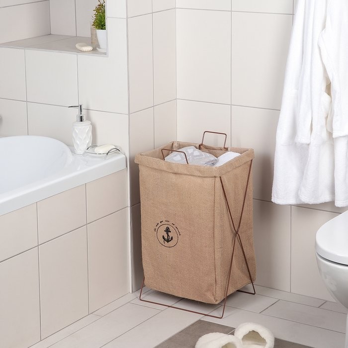 Корзина для белья складная «Морячок», 35×28,5×57,5 см, цвет бежевый