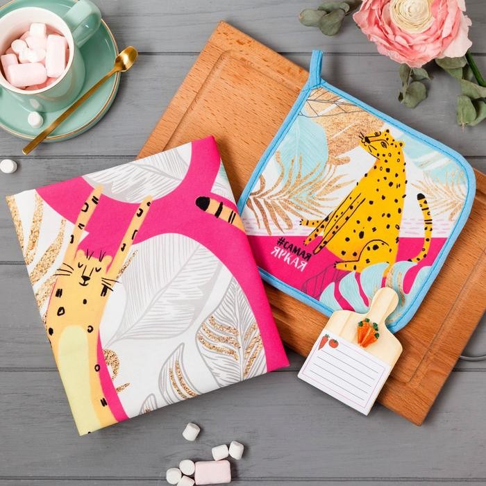 Набор подарочный «8 Марта» полотенце 40х73см, прихватка 19х19см, магнит 11х7см