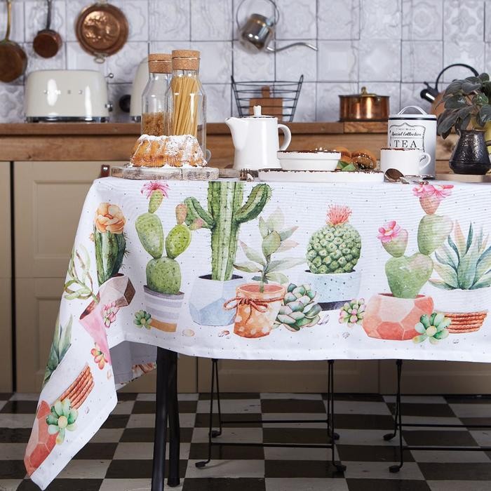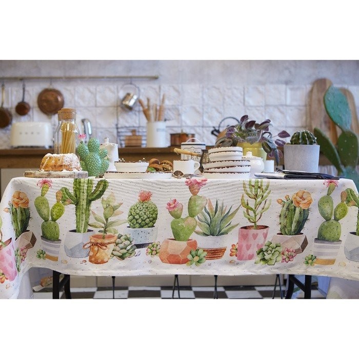 Скатерть Этель «Кактусы» 220×147 см, 100% хл, рогожка 160 гр/м2