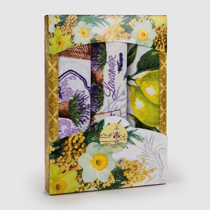 Набор полотенец в коробке Лаванда 45×60 см, 3 шт, вафля, 170 гр/м2, хлопок 100%