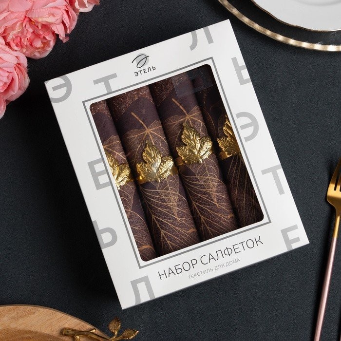 Набор салфеток с декорат. кольцами «Gold Leaf» 46х46см — 4 шт, 100% хл, саржа 190гр/м2