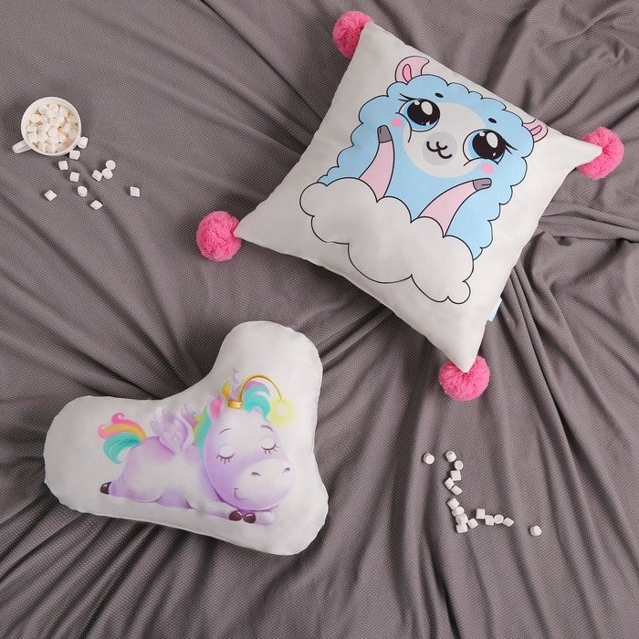 Подушка декоративная Крошка Я «Радужная лама», СОРТ 2, 45×45 см, велюр, 100% полиэстер