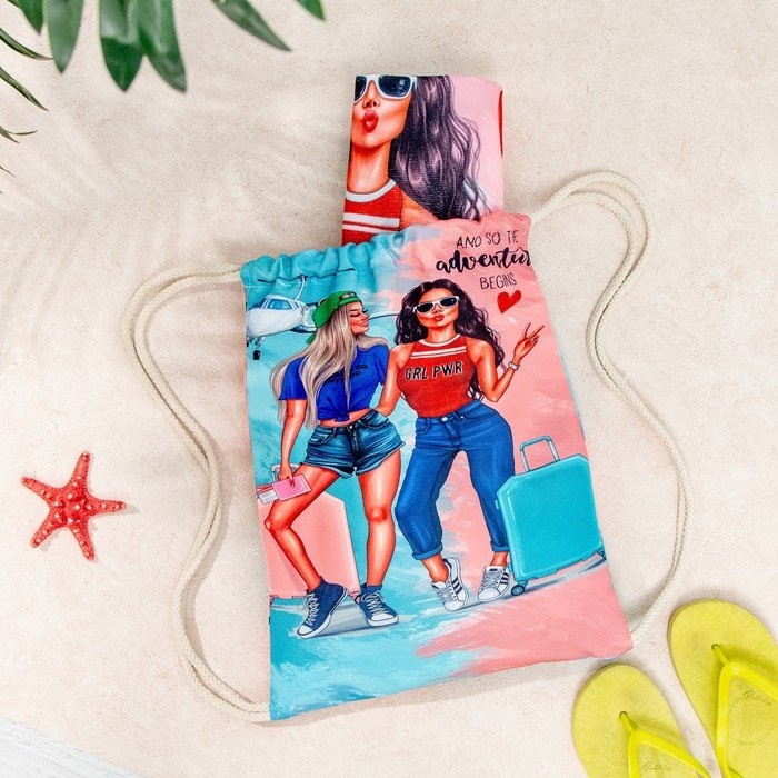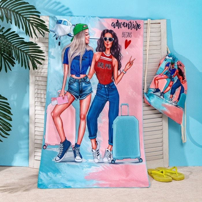 Полотенце пляжное в сумке Этель «Adventure» 70×140 см, микрофибра