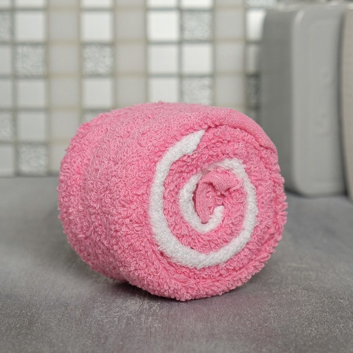 Полотенце-леденец 30 см × 30 см, бело-розовое