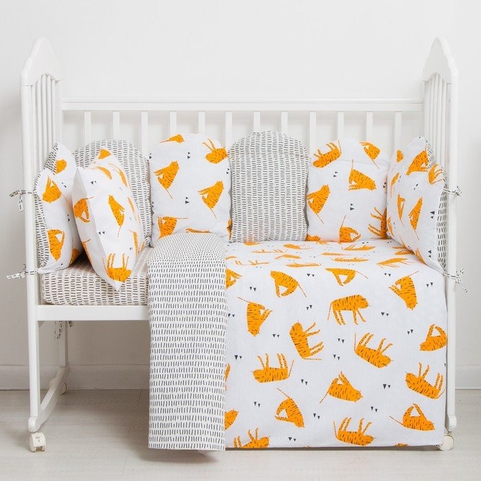 Бортики в кроватку Крошка Я «Тигры», (60*42смх2шт,30*42смх8шт), 100% хлопок
