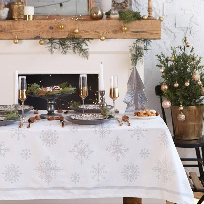 Скатерть «Этель» Серебряные снежинки 149х250см, 100%хл, 190 г/м2