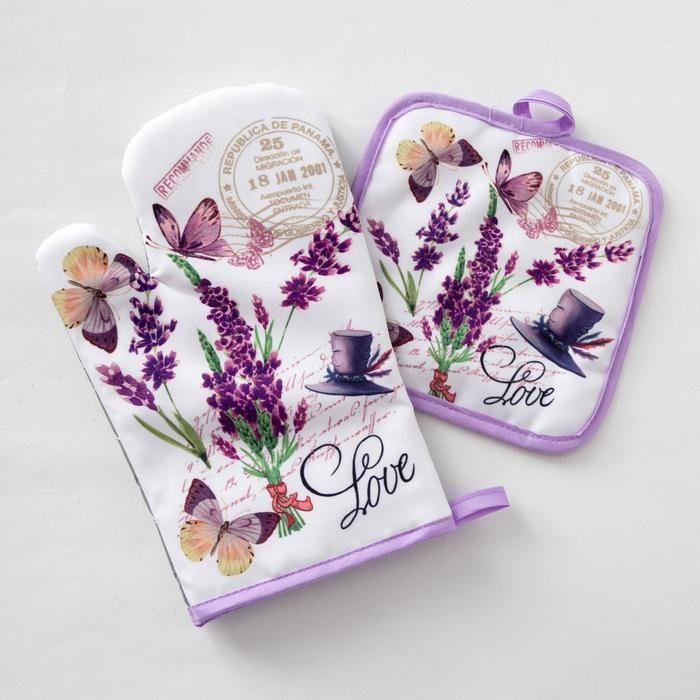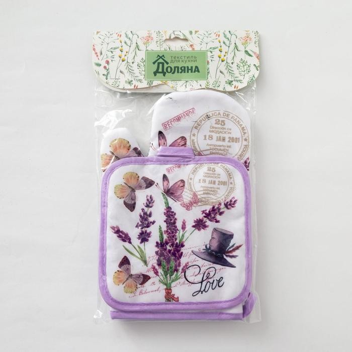 Кухонный набор «Доляна» Love, прихватка 17×17 см, рукавица 26×16 см