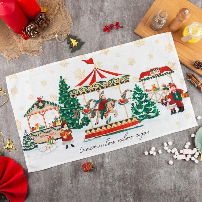 Полотенце «Этель» Счастливого Нового Года 40×73 см, 100% хл, вафел.полотно 164 гр/м2