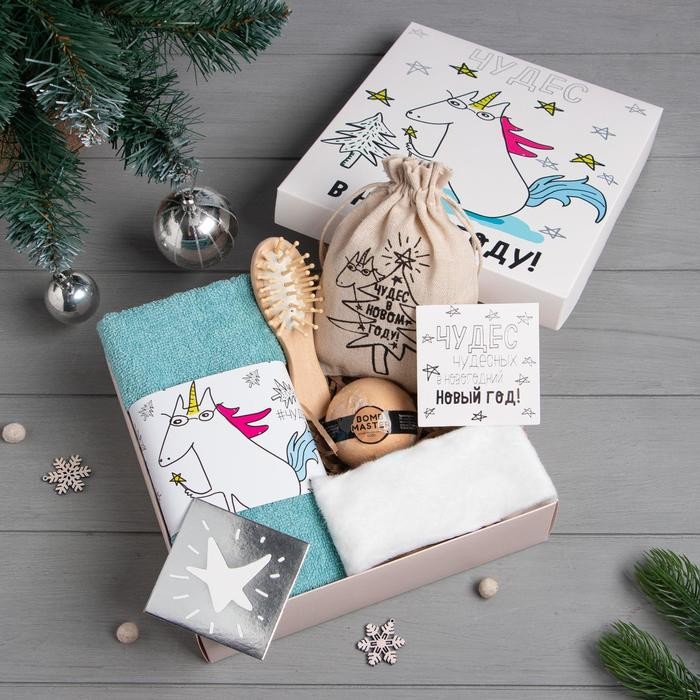 Набор подарочный «Чудес в Новом году» полотенце и аксессуары (4 предмета)