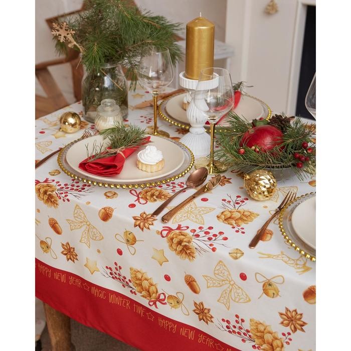 Скатерть «Этель» Golden Christmas 149х250см c ГМВО, 100%хл, 190 г/м2