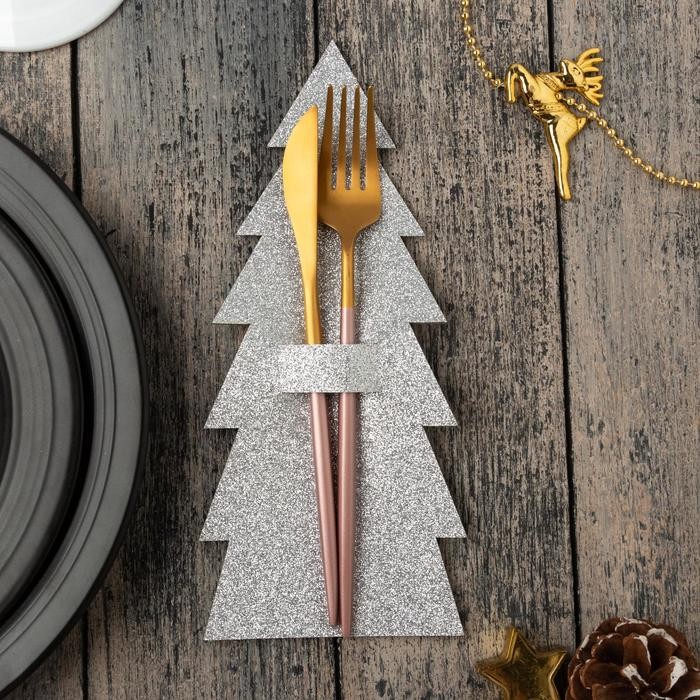 Конверт для столовых предметов «Елка» 11×25 см, 100% п/э, фетр