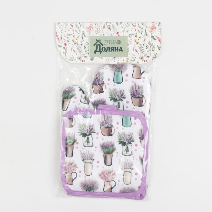 Кухонный набор Доляна «Прованс», прихватка 17*17 см, рукавица 26*16 см,100% п/э