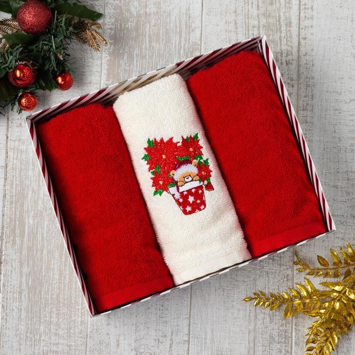 Набор полотенец «Новогодний мишка» 30×60 см- 3 шт