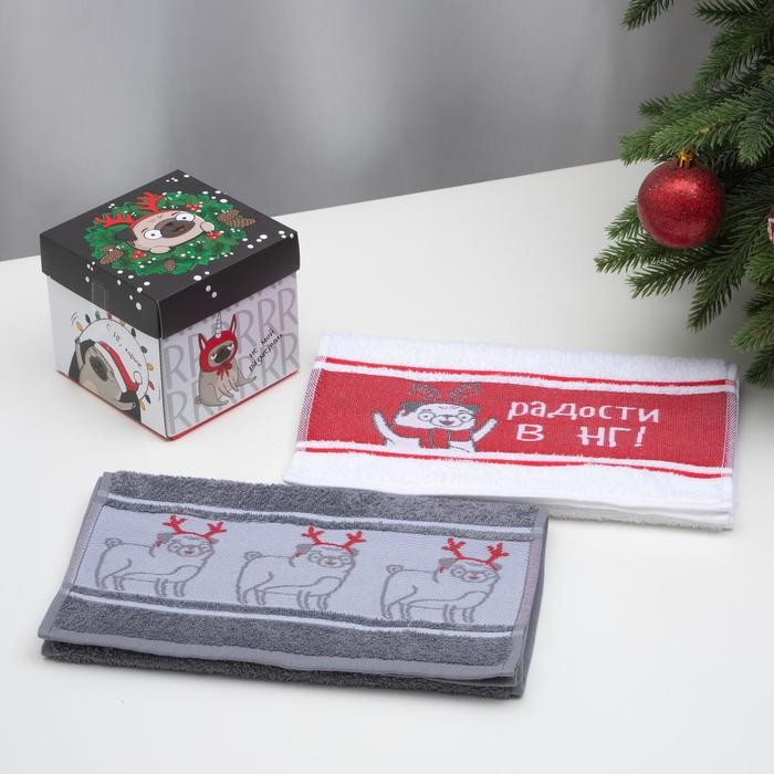 Набор махровых полотенец «С НГ, короче» 30×70 см — 2 шт, 100% хлопок, 370 гр/м2