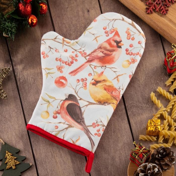 Варежка-прихватка «Winter birds» 20х28см, саржа, 100% х/л, ватин 250г/м2