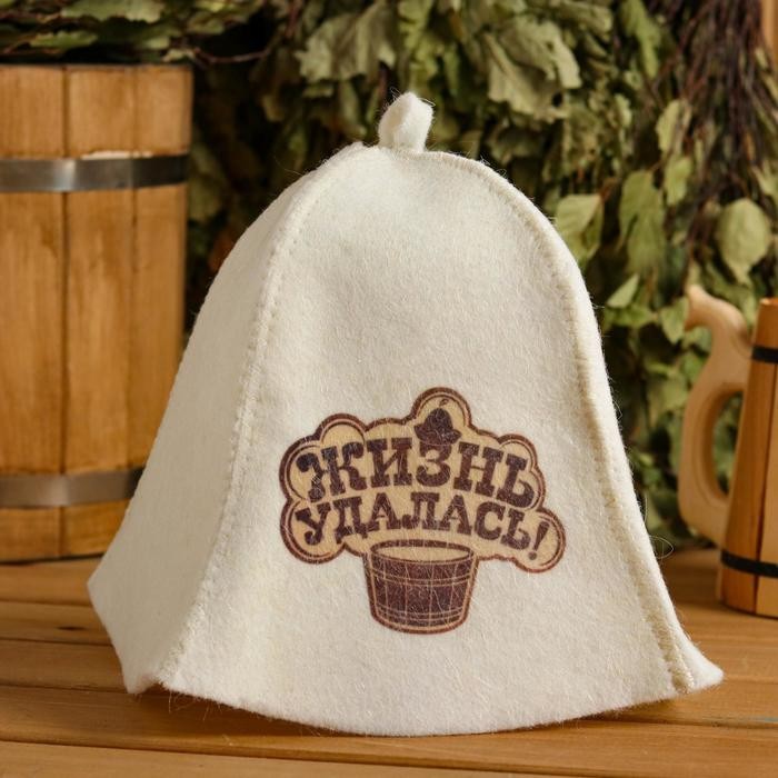 Шапка для бани «Жизнь удалась» с принтом, белая