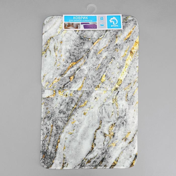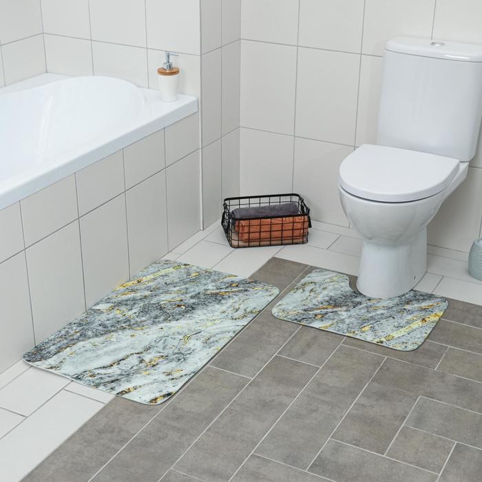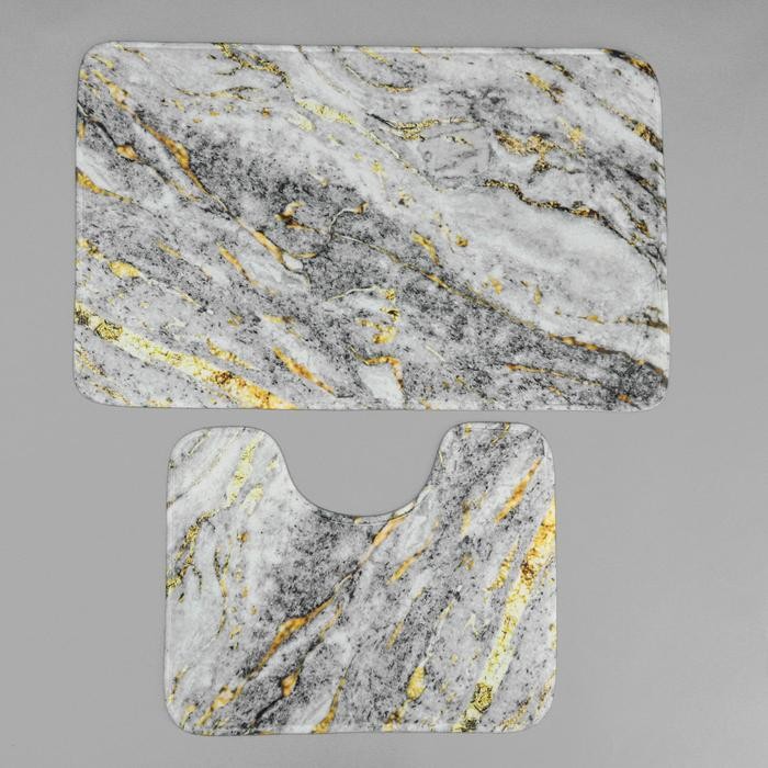 Набор ковриков для ванны и туалета Доляна «Мрамор», 2 шт: 79×50, 50×39 см, цвет серый